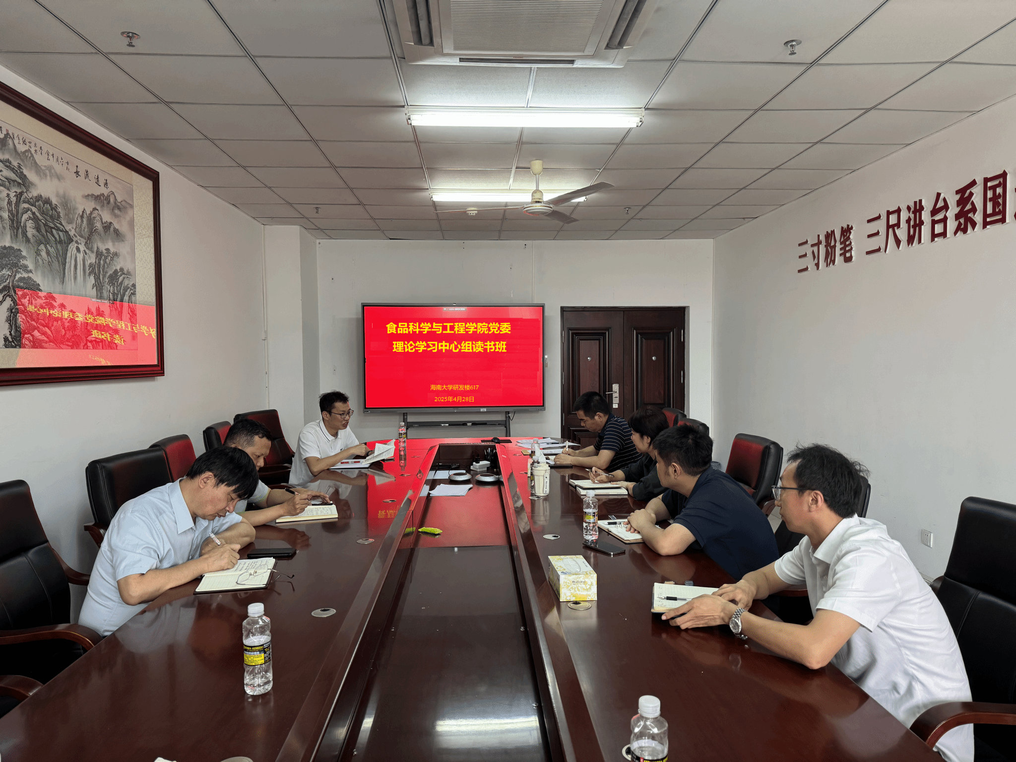 4月28日上午在研发楼617会议室,好博体育党委理论学习中心组举行深入贯彻中央八项规定精神学习教育读书班暨理论学习中心组学习会,深入学习“习近平总书记关于加强党的作风建设的重要论述和中央八项规定及其实施细则精神”。公司党委书记邢红斌主持会议,理论学习中心组全体成员、各支部书记参加会议。