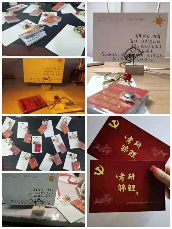 为增强支部考研党员的信心,同时充分调动员工党员为同学服务的积极性,12月12日至13日好博体育本科第二员工党支部开展“研途送温暖”活动。活动开始前,支委为考研党员同志购买明信片和纪念钥匙扣。12月12日中午,支部其他党员一起为考研的党员同志书写句句祝福话语,默默派送到每个考研党员同志的宿舍书桌,精心地准备温暖的小惊喜。本次为考研党员同志送温暖活动,不仅以正能量的方式激励了考研学子,鼓舞奋战考研的学子们以积极的心态投入备考冲刺阶段,也彰显了党支部的人文关怀,有助于营造支部团结温馨的氛围。辛苦学习了一天回到宿舍的党员同志们在看到书桌上的纪念品和卡片,纷纷表示感动和感谢!