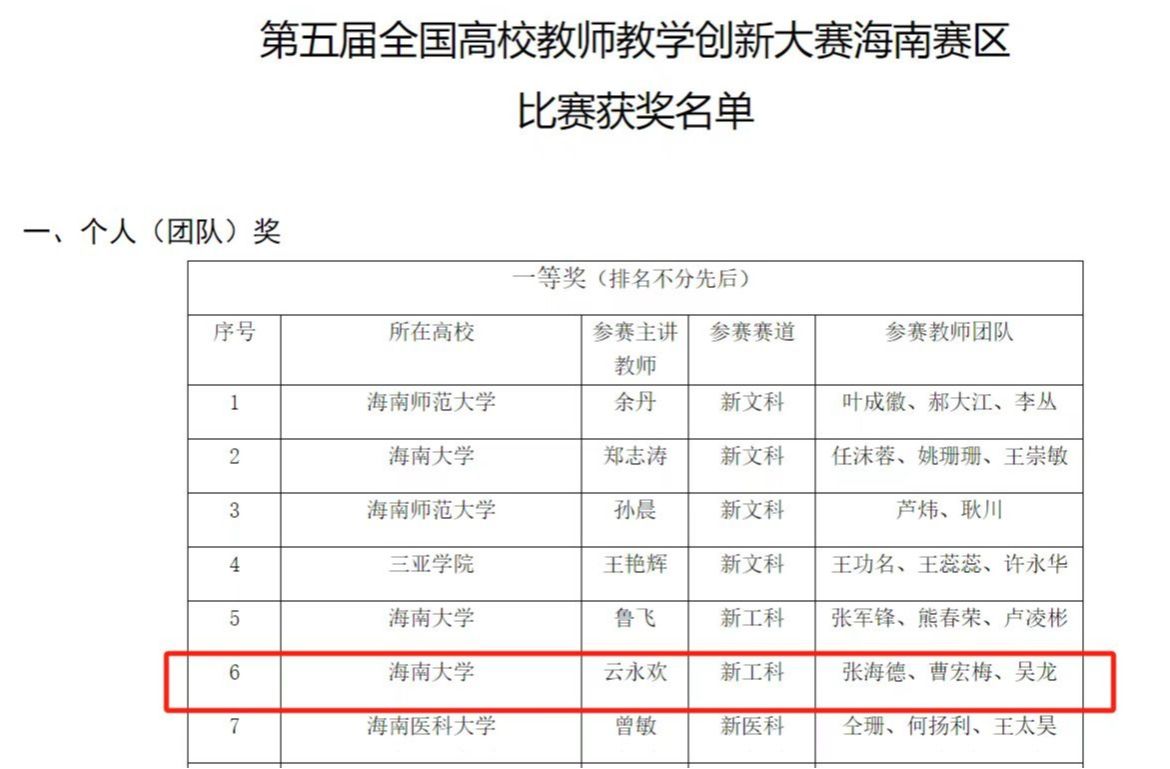 喜报!公司云永欢老师在第五届全国高校教师教学创新大赛海南赛区荣获一等奖