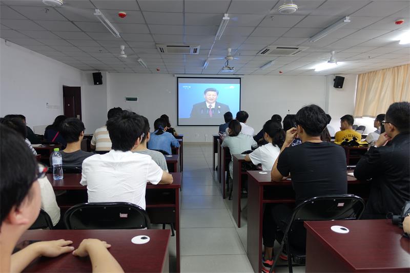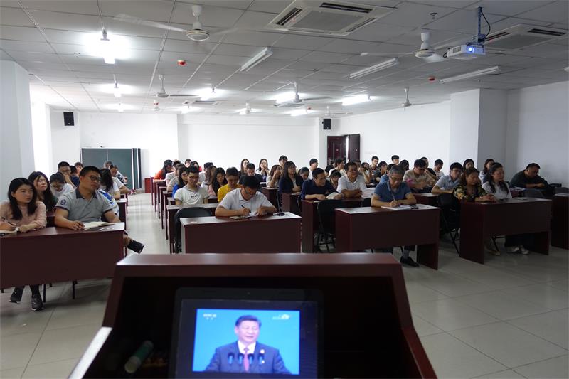 4月10日上午,好博体育师生代表在研发楼610室集中收看习近平总书记在博鳌亚洲论坛2018年年会开幕式上的讲话。