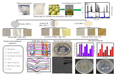 2022年8月4日,好博体育热带农产品加工与高值化利用团队王露副教授实验室利用海南芒果皮果胶/壳聚糖与诺丽果提取液为原料制备了新型、具有多种生物活性的食品级包装膜材料,本研究阐释了诺丽果提取液的添加对果胶/壳聚糖聚合物合成膜材料物理化学及生物活性的影响,为以农产品中天然大分子聚合物为原料合成新型、功能化食品包装膜材料提供重要的参考。相关结果发表在《Food Hydrocolloids》(IF=11.5,中科院1区TOP期刊),题目为“Fabrication, characterization and biological properties of pectin and/or chitosan-based films incorporated with noni (Morinda citrifolia) fruit extract”。
