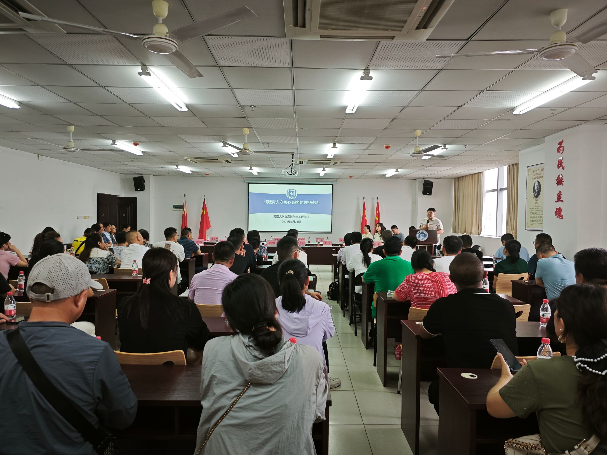 张家超经理以“铸魂育人守初心、服务地方担使命”为主题,通过回顾食品科学与工程专业的建设初衷、公司的创办和发展历史、发展现状以及未来的建设构想,向与会家长讲述了海大食品人立足南疆的开拓史、创业史、奋斗史以及面向未来的机遇与挑战。张经理同时介绍了公司的科研平台和研究方向建设情况,并指出,公司不仅可以在基础研究领域持续培养出迈向世界一流大学继续深造的科研人才,也有能力面向食品工业、面向智能制造培养更多优秀人才。
