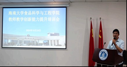 在随后的培训过程中,云永欢副经理、陈健主任、张明副教授、汪乐川副研究员分别围绕“食品分析”课程的升级与教学、“人体生理学”课程的思政教学设计创新、基于ADDIE模型的“食品化学”双语教学模式改革与应用,以及“热带农产品加工学”的创新创业引导与专业知识融合等教学主题进行了深入的交流与探讨。之后,万力维副经理、刘志刚教授、潘永贵主任和钟秋平教授对上述主题进行了点评和指导。最后,万力维副经理对培训会进行了总结。