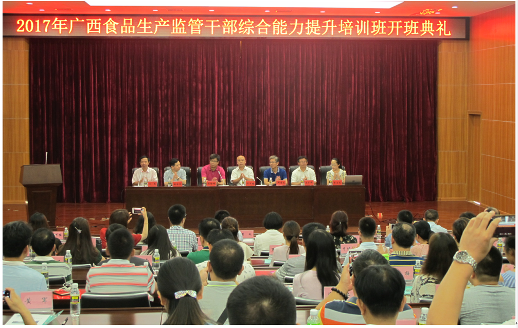 2017年7月3日至7日,好博继续教育公司及好博体育联合承办了广西食品生产监管干部培训教学活动。广西壮族自治区食品药品监管局副局长陈可猛、好博陈险峰副董事长、食品生产监管处处长胡振洲, 海南省食品药品监督管理局彭林波调研员、好博体育邓秀成书记及史学群副经理、好博继续教育公司李玉凤副经理共同出席了开班仪式。