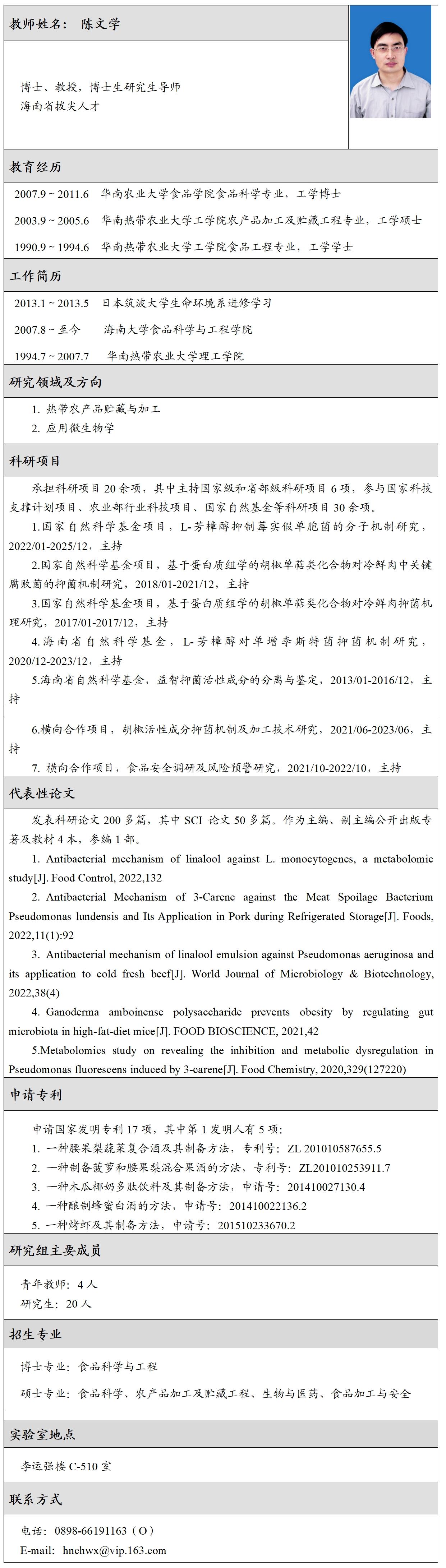 拥有农业部及海南省“农产品加工及贮藏工程”重点学科,