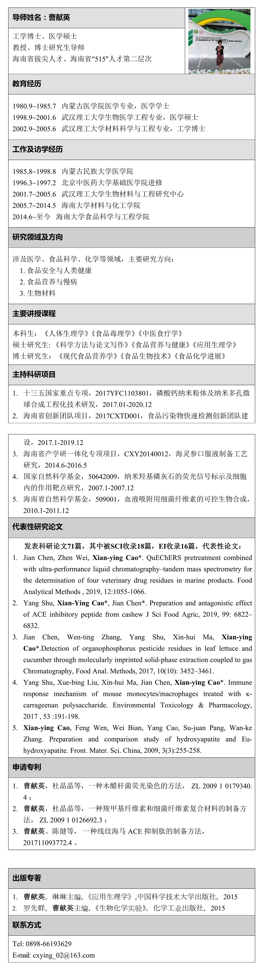 拥有农业部及海南省“农产品加工及贮藏工程”重点学科,
