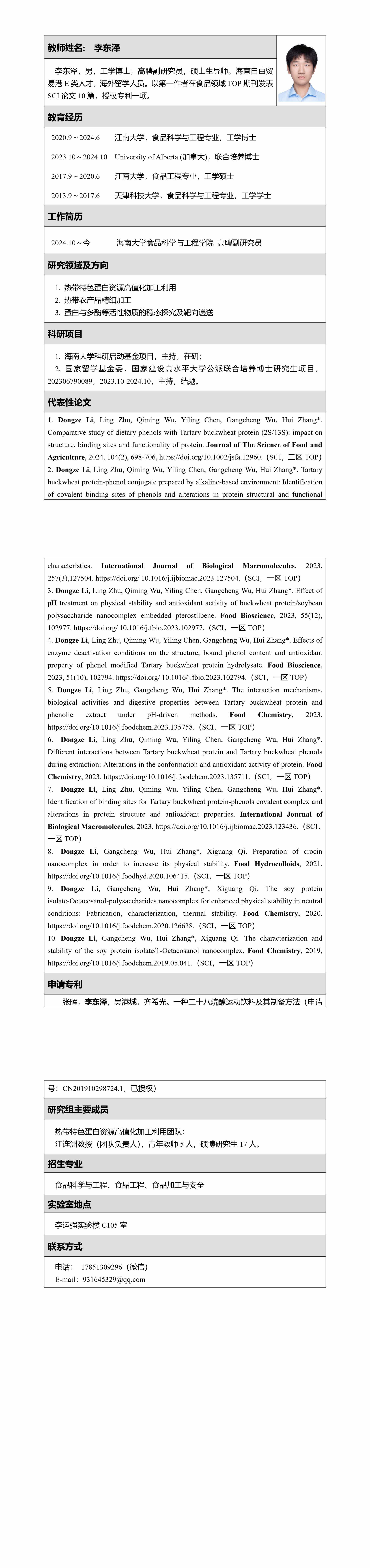 拥有农业部及海南省“农产品加工及贮藏工程”重点学科,