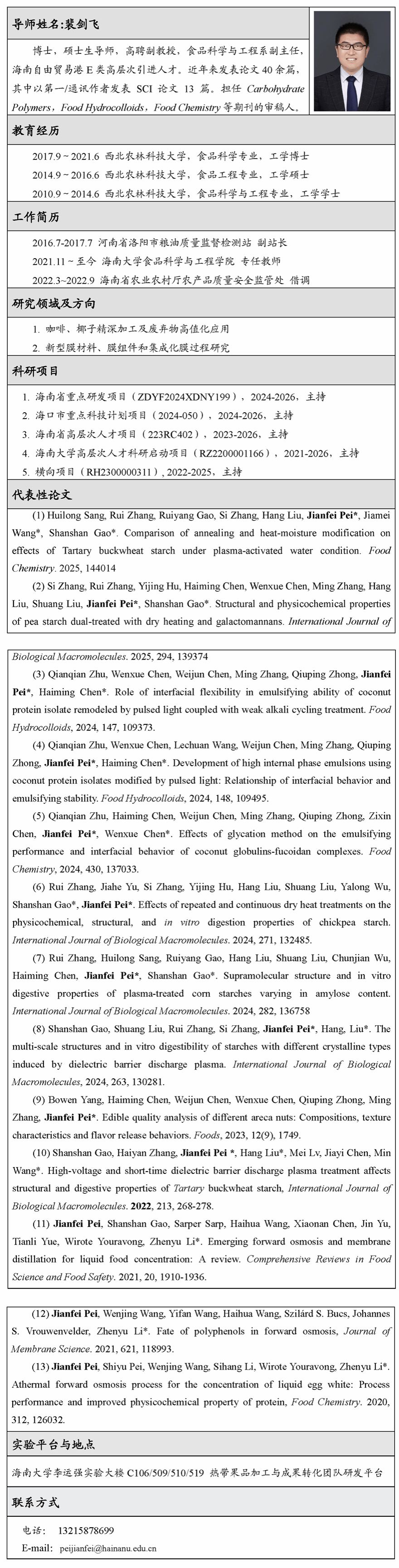 拥有农业部及海南省“农产品加工及贮藏工程”重点学科,