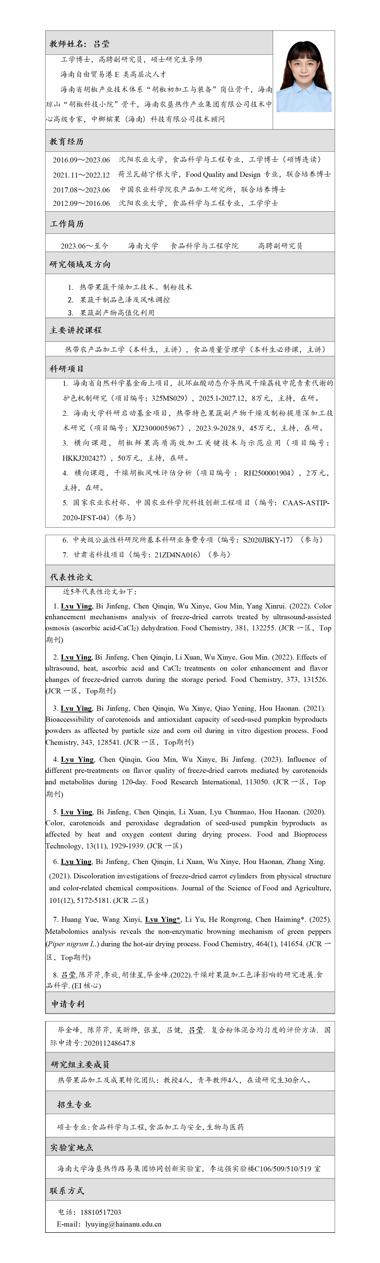 拥有农业部及海南省“农产品加工及贮藏工程”重点学科,