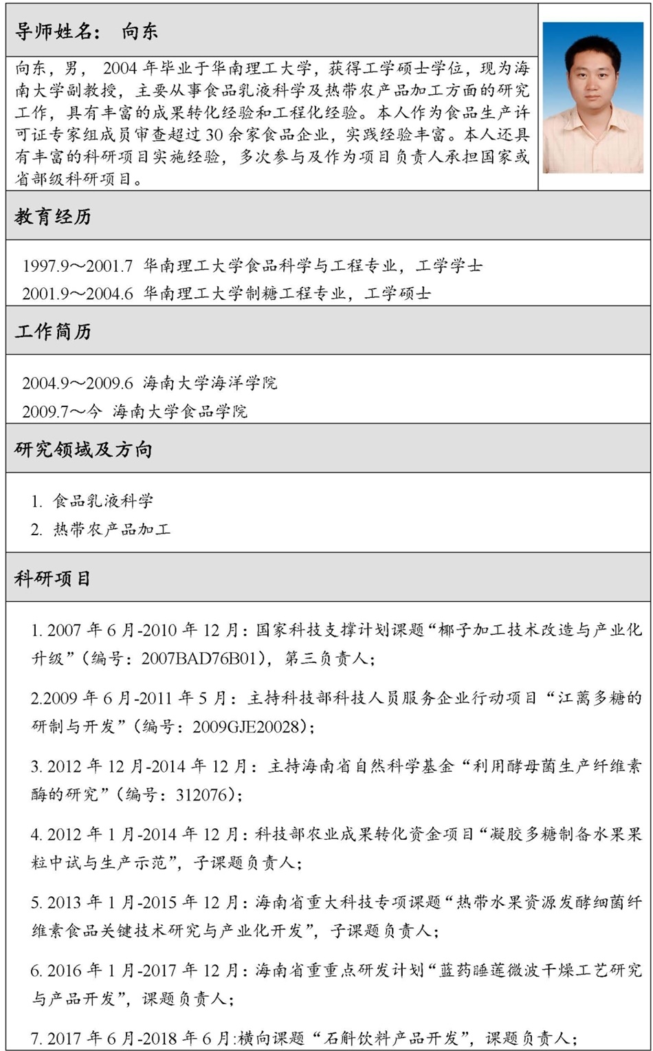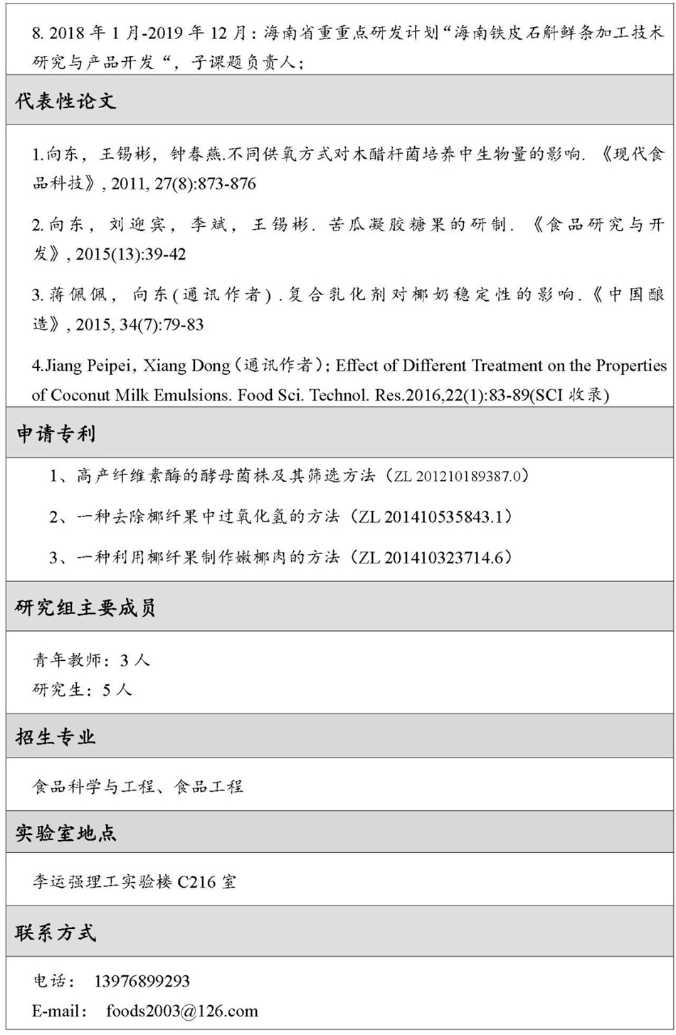 拥有农业部及海南省“农产品加工及贮藏工程”重点学科,