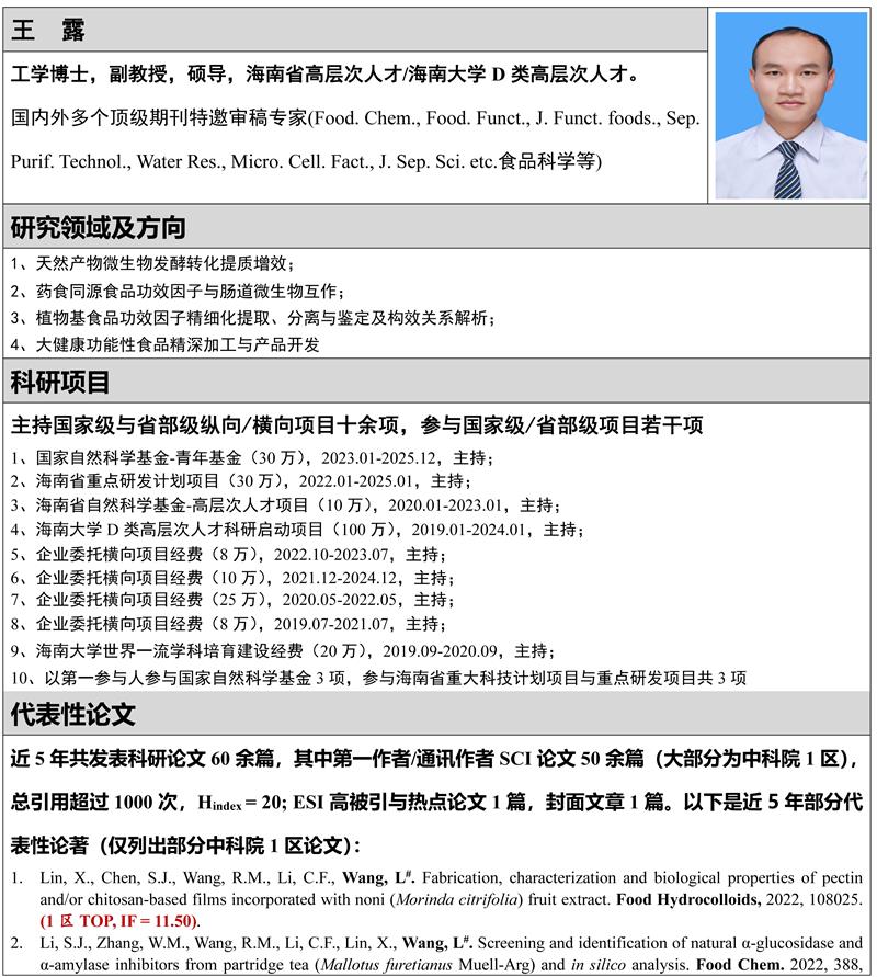 拥有农业部及海南省“农产品加工及贮藏工程”重点学科,