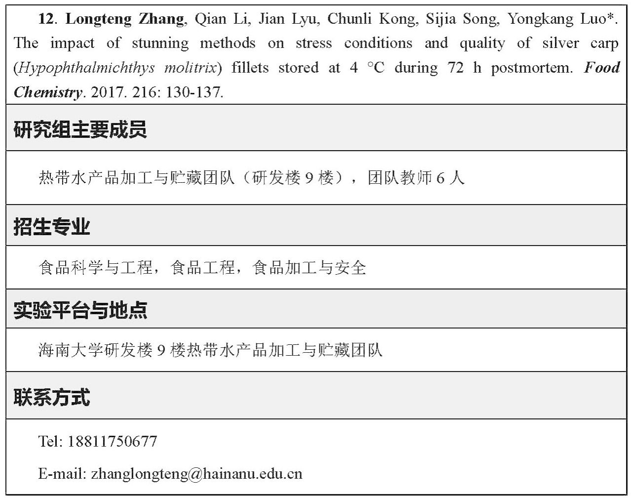 拥有农业部及海南省“农产品加工及贮藏工程”重点学科,