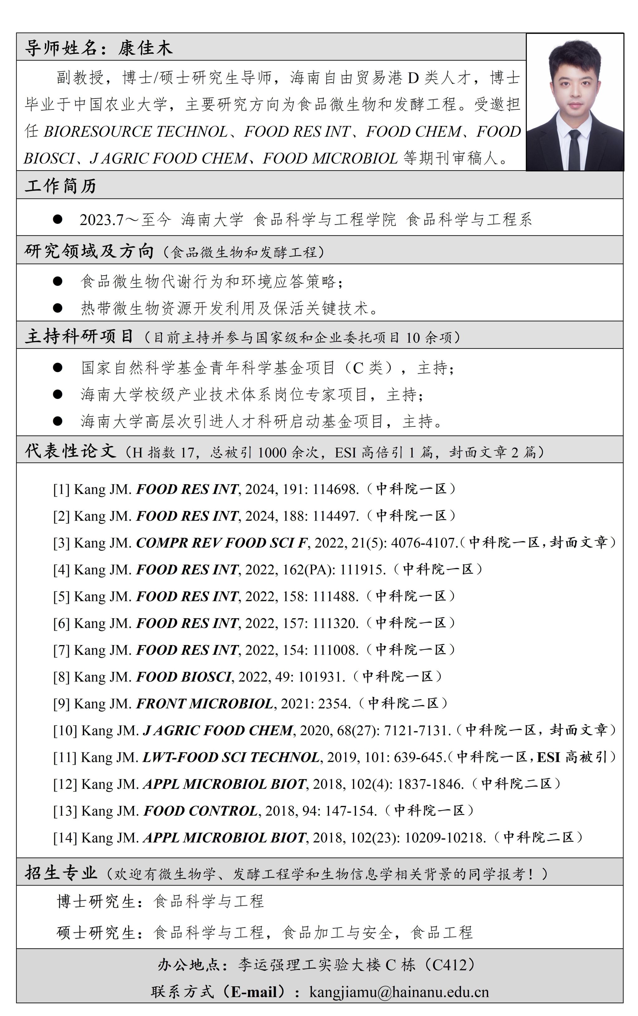 拥有农业部及海南省“农产品加工及贮藏工程”重点学科,