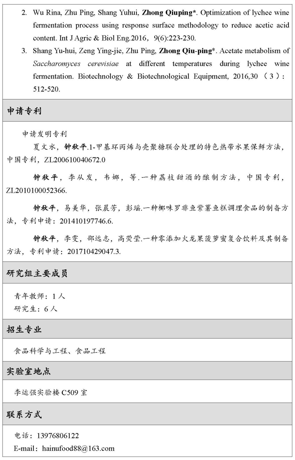 拥有农业部及海南省“农产品加工及贮藏工程”重点学科,