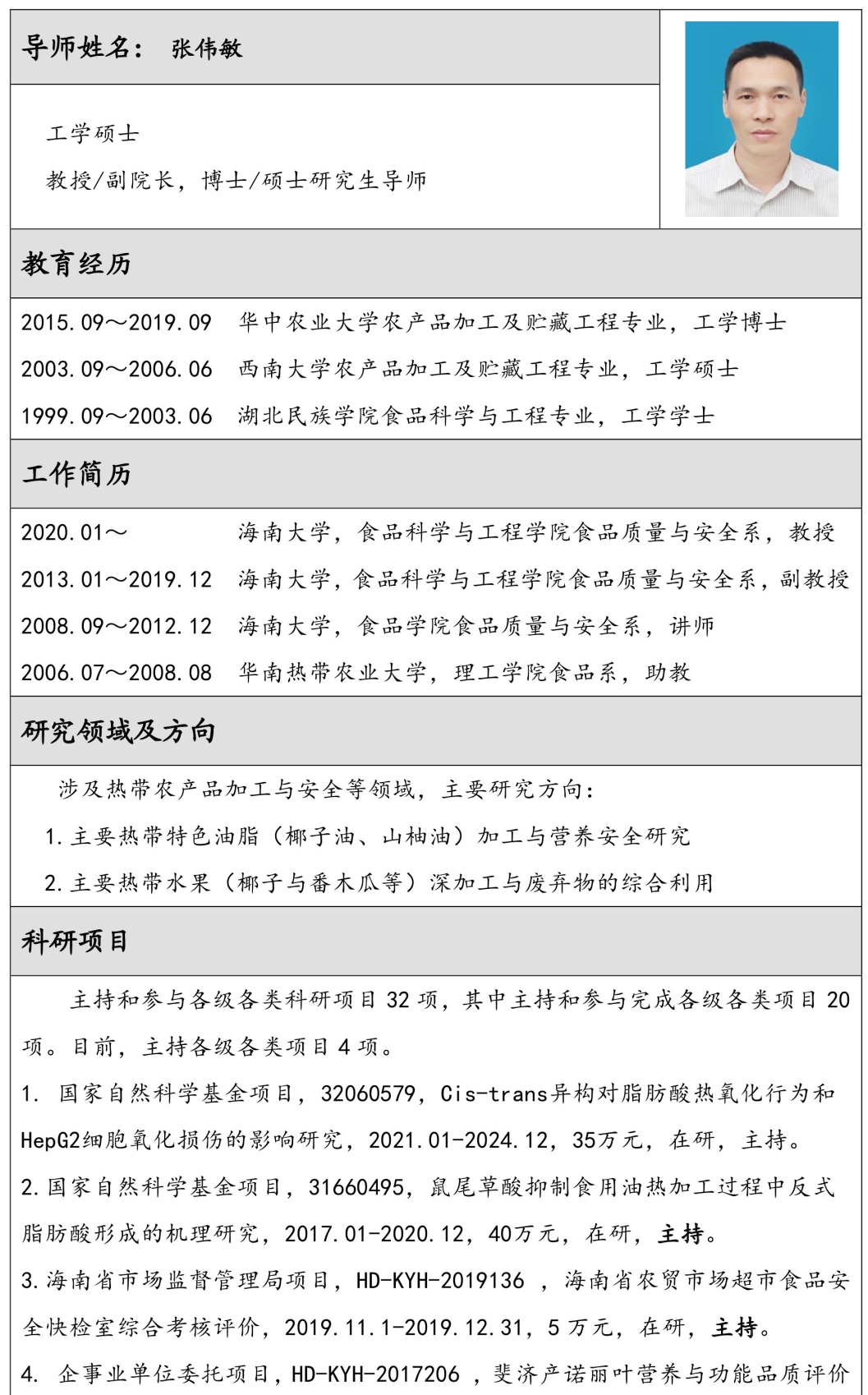 拥有农业部及海南省“农产品加工及贮藏工程”重点学科,