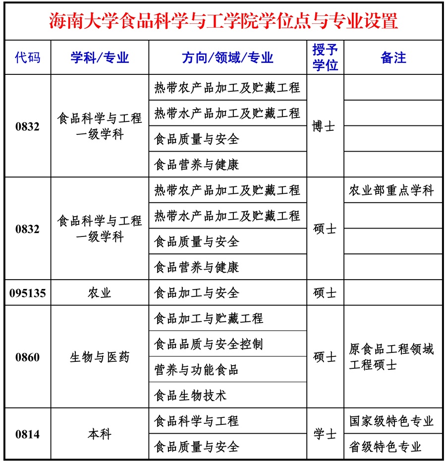 拥有农业部及海南省“农产品加工及贮藏工程”重点学科,